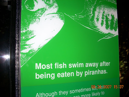 Jeff writes, "I saw this at the Vancouver Aquarium in British Columbia. I think they mean 'bitten' instead of 'eaten'."